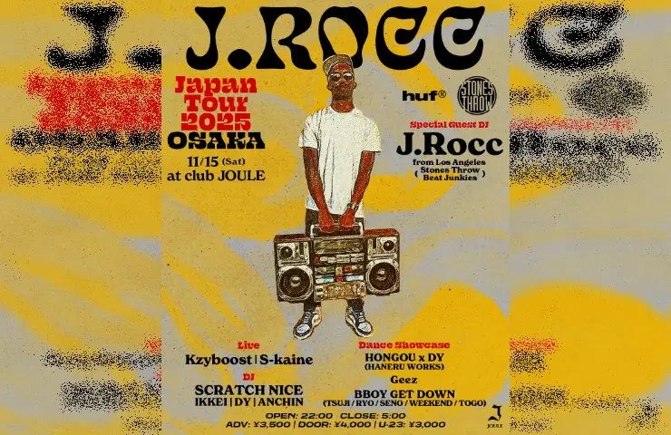 세계 최고의 인디 레이블, 스톤즈 스로우(Stones Throw) 출신으로, 역동적이고 펑키한 플레이로 세계를 뒤흔드는 DJ J.Rocc이 2년 만에 첫 일본 투어의 일환으로 오사카 JOULE에서 공연합니다! 간사이 지역 출신의 스페셜 라이브/DJ/댄스 쇼케이스도 준비되어 있습니다! 스톤즈 스로우와 HUF의 콜라보 투어도 발표되었습니다!