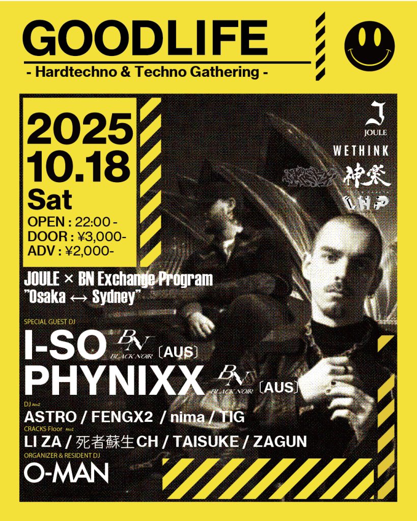 大阪标志性的电子音乐派对 GOODLIFE 再次与澳大利亚领先的硬电子音乐品牌 BLACK NOIR 联手。